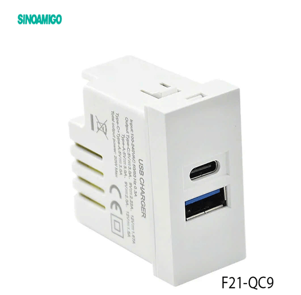 Thông tin sản phẩm Hạt Ổ Cắm Sạc USB Type A+C Sinoamigo F21-QC9 | Công Suất 20W Chính Hãng Cao Cấp